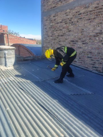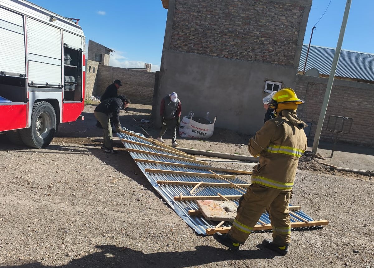 “El sábado 18/04/26, a 11:45 hs salen dos dotaciones a Calle Pino Hachado 1414 por voladura de chapas zinc galvanizadas de 7 mts aproximadamente, producto de fuertes ráfagas de viento, se procede a acopiar en el patio trasero de esa vivienda, colocando sujeción y carga quedando sin novedad.
