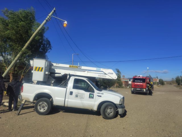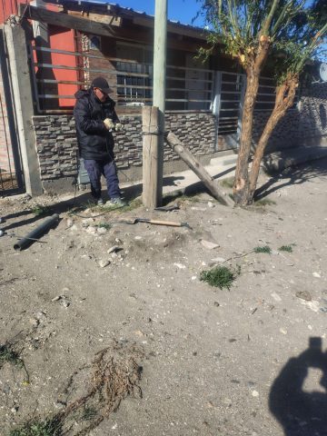 “Luego, a 11:38 hs sale otra dotación a calle Homero Manzi 682, Arribados se procede a colaborar con personal de CEEZ, debido a un poste de energía eléctrica, por caer a la vía pública”.